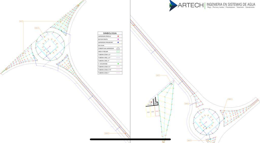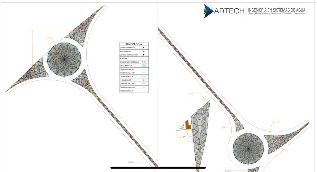 Desarrollo de ingeniería para sistema de riego de camellones y rotonda en parque industrial en San Luis Potosí.